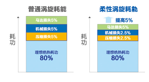 壓縮機(jī)效率提供5%,所有壓縮機(jī)均使用柔性渦旋全直流變頻壓縮機(jī),實(shí)現(xiàn)了壓縮機(jī)的全變頻化,效率相,比普通壓縮機(jī)可提升5%。