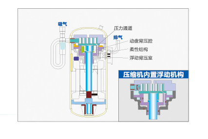 柔性渦旋盤結(jié)構(gòu)設(shè)計(jì),在壓縮機(jī)負(fù)荷出現(xiàn)異常變化時(shí),有效免液壓縮機(jī),提升壓縮機(jī)的可靠性。 壓縮機(jī)內(nèi)置浮動(dòng)機(jī)構(gòu),在內(nèi)部壓力異常上升時(shí),自動(dòng)將動(dòng)渦旋和靜渦旋分離泄壓,避免損壞渦旋盤。